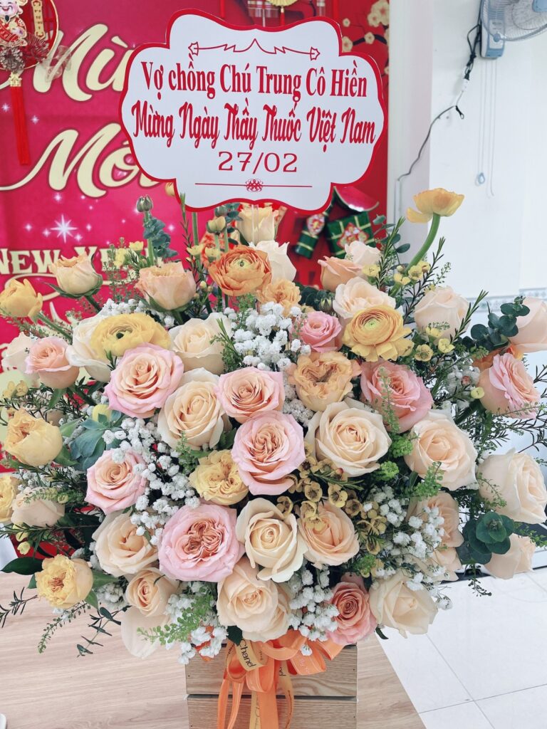 Các đơn vị tặng hoa chúc mừng Ngày Thầy thuốc VN 27/02. Ảnh VA.