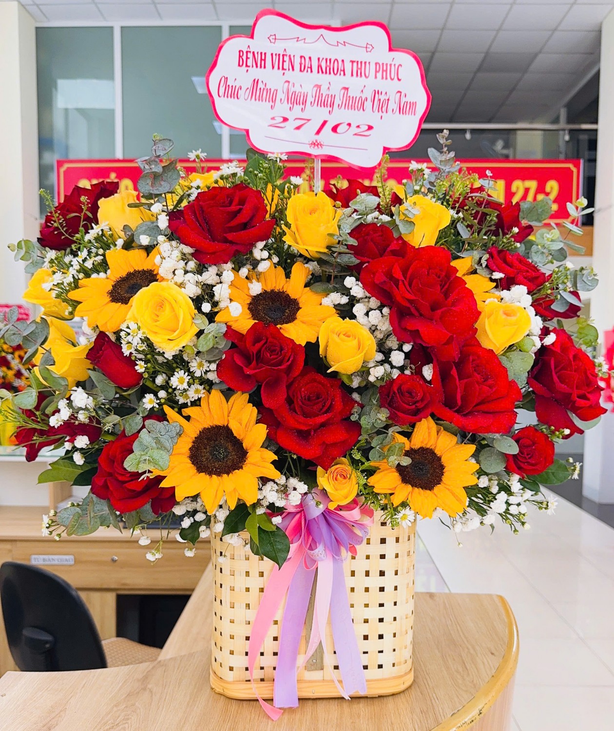 Các đơn vị gửi lẳng hoa chúc mừng bệnh viện. Ảnh: TP
