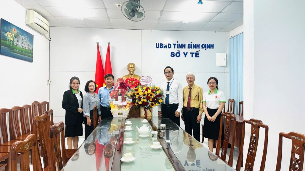 Lãnh đạo Bệnh viện ĐK Thu Phúc chúc mừng Sở Y tế Bình Định nhân Ngày Thầy thuốc VIệt Nam. Ảnh: TP